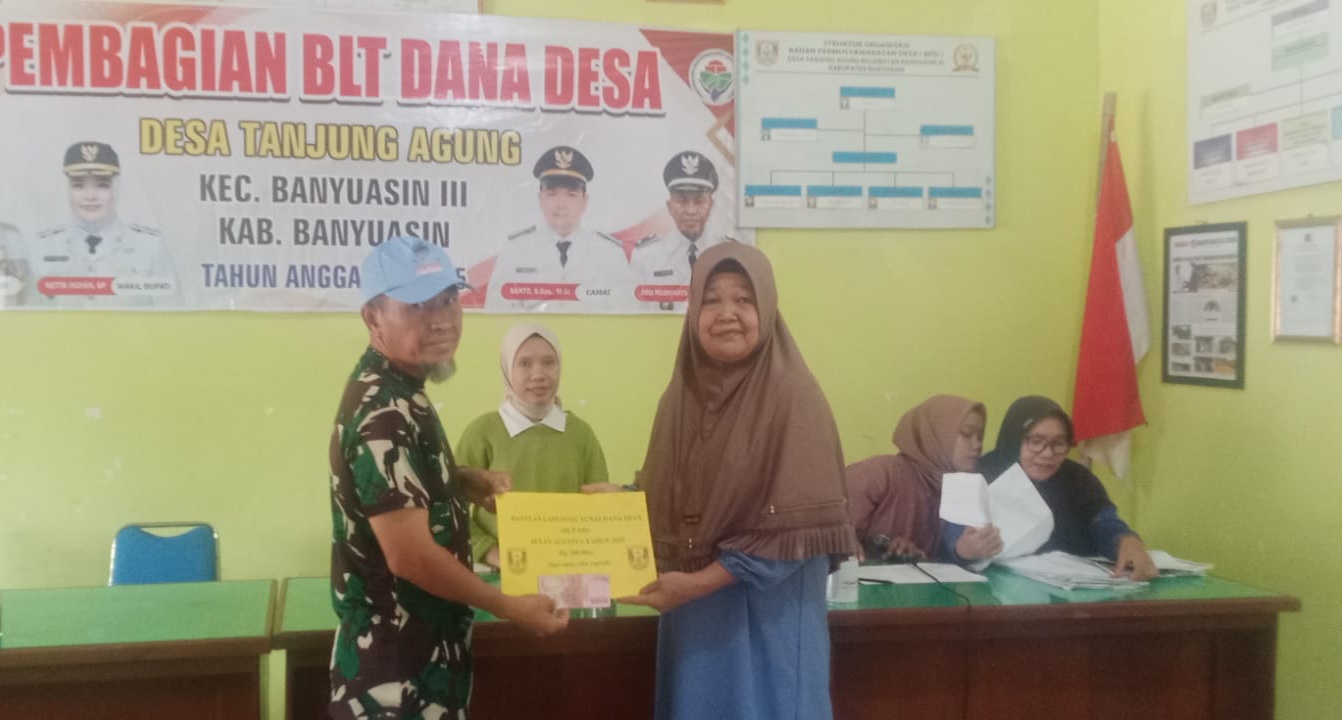 Tanjung Agung, Kamis 07 Agustus 2025. – Bantuan Langsung Tunai Dana Desa (BLT-DD) bulan ke 8 disalurkan Pemerintah Desa Tanjung Agung Kecamatan Banyuasin 3 Kabupaten Banyuasin ke 32 orang keluarga penerima manfaat bertempat di Kantor desa.