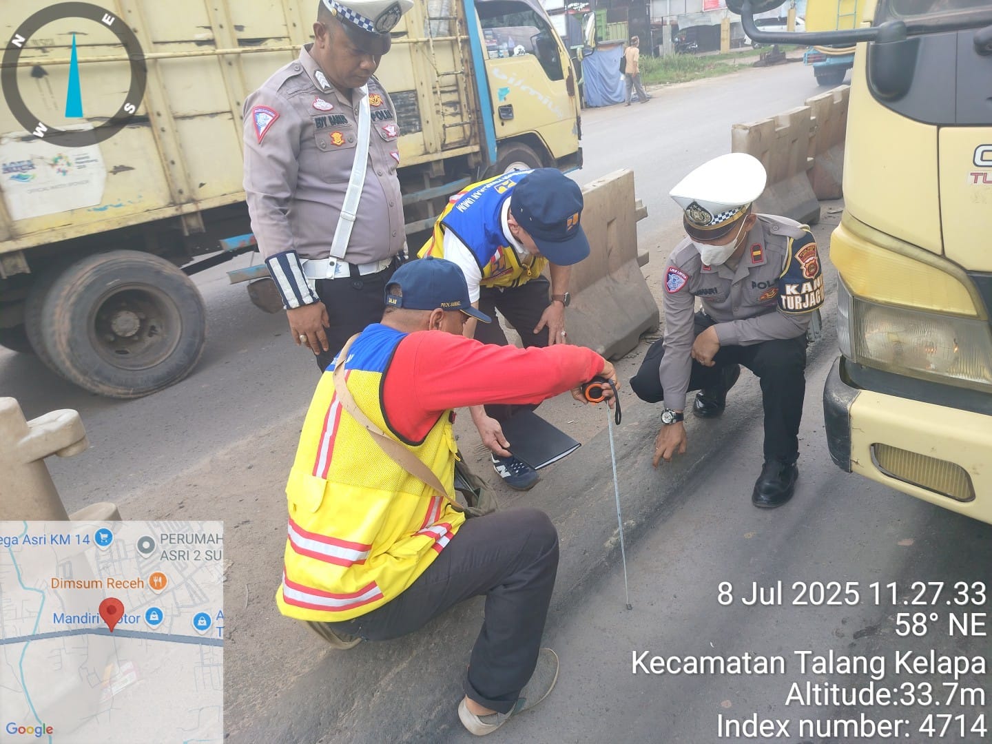 Usai melakukan penelitian dan pemeriksaan lokasi saat dimintai keterangan Kanit Turjagwali Satlantas Polres Banyuasin Ipda Jumhari Romadhon mengatakan “kerusakan jalan aspal, kemudian dilakukan pendataan dan dokumentasi kendaraan penyebab kerusakan jalan,” ujar mantan Personel Bidhhumas Polda Sumsel ke awak media Rabu (9/07) pagi.