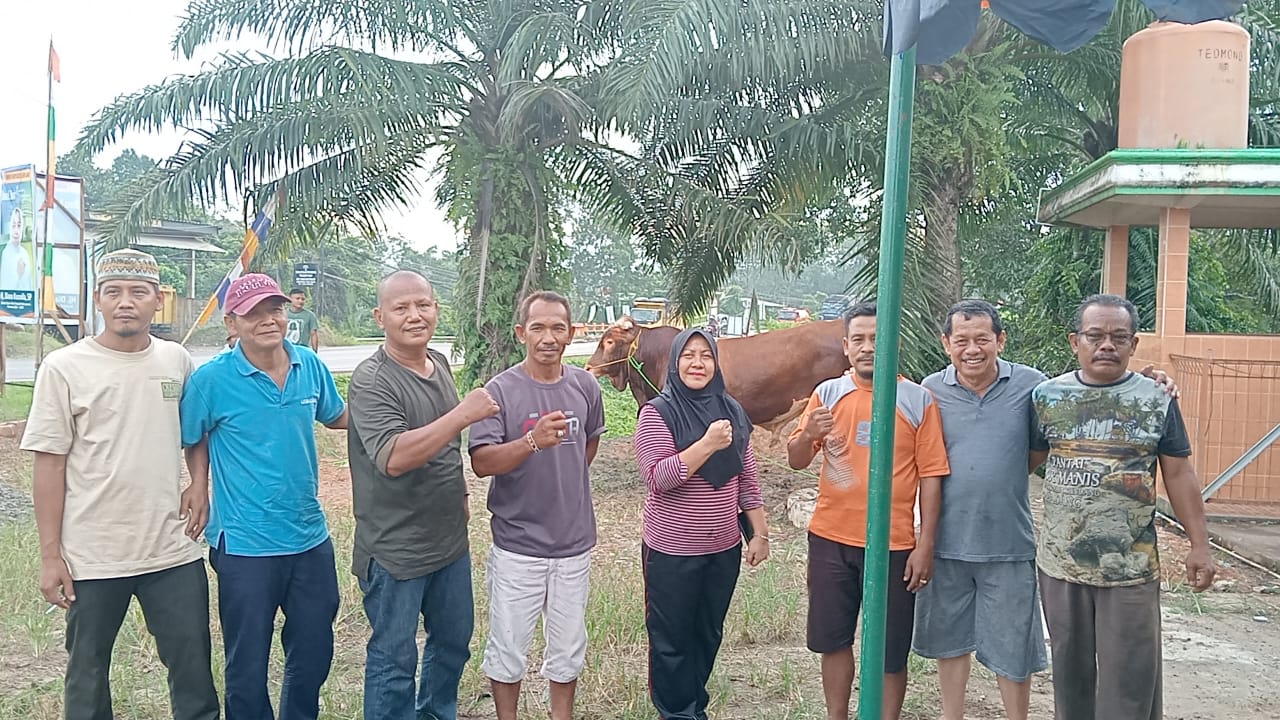 Banyuasin – Ketua Panitia Pemotongan Hewan Qurban Idul Adha 1445 H. Masjid Syuhada Kelurahan Kedondong Raye, Kecamatan Banyuasin III, Kabupaten Banyuasin, Sumatera Selatan, Mengucapkan Terima Kasih kepada Keluarga besar H. M. Basir Tholib yang telah menyerahkan satu ekor sapi berjenis Simental.