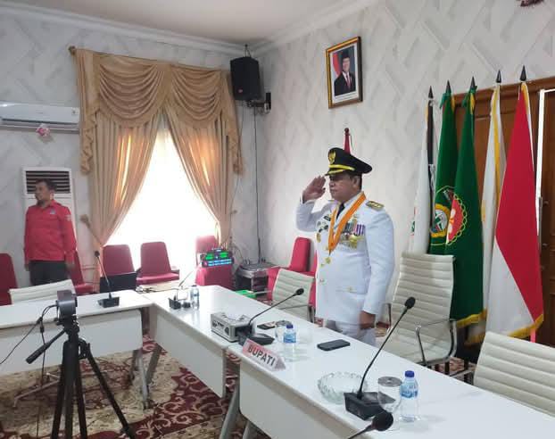 Pangkalan Balai, – Pemerintah Kabupaten Banyuasin mengikuti upacara bendera dalam rangka Memperingati Hari Otonomi Daerah Ke – XXIX secara daring di Guest House Rumah Dinas Bupati Banyuasin, Jumat (25/4).