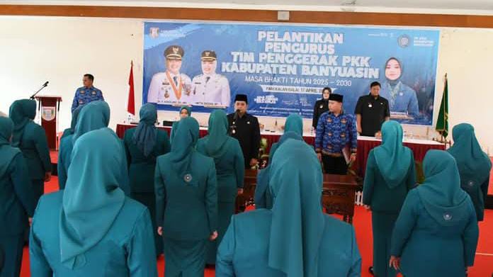 Pangkalan Balai, – Pengurus PKK Kabupaten Banyuasin Periode 2025-2030 secara resmi dilantik oleh Bupati Banyuasin, Dr. H. Askolani, SH., MH di Pendopoan Rumah Dinas Bupati Banyuasin, Kamis (17/04).