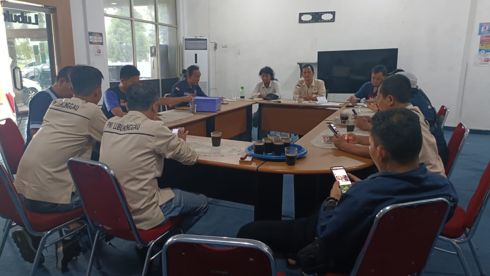 Selain pengurus PWI Lubuklinggau, rapat juga dihadiri pejabat di lingkungan Kominfotiksan Lubuklinggau, Febrian Saputra dan Willy di Kantor Kominfotiksan Lubuklinggau, Jumat (24/2/23).