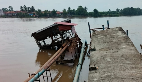Banyuasin, Onlineberita.id – Di tengah gencarnya program Pemerintah Kabupaten Banyuasin memperluas layanan air bersih, kondisi fasilitas vital berupa intake Perusahaan Daerah Air Minum (PDAM) di tepi Sungai Lebung justru memprihatinkan. Bangunan penopang yang berfungsi menyedot air baku untuk diolah PDAM itu tampak ambruk dan nyaris roboh.