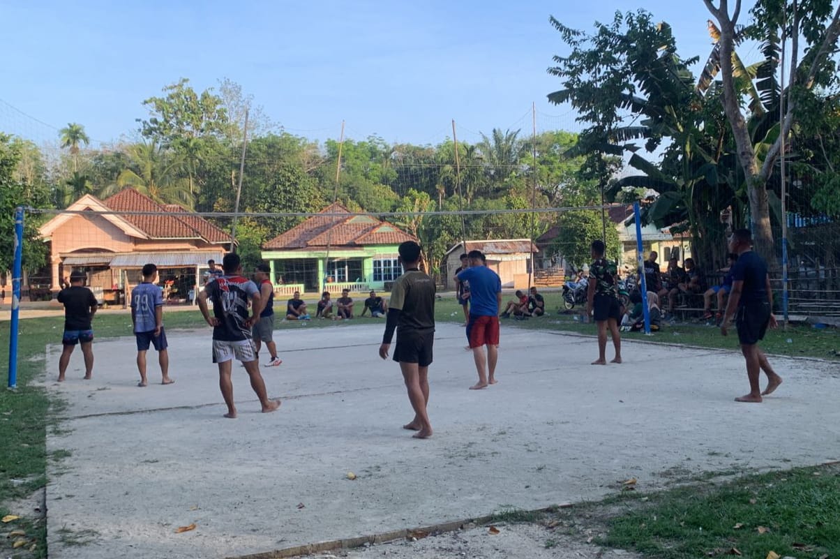 Banyuasin – Dengan berolahraga bersama masyarakat, salah satu cara Anggota Satgas TNI Manunggal Membangun Desa (TMMD) ke-121 Kodim 0430/Banyuasin menjalin silaturahmi, seperti halnya yang di lakukan anggota satgas melepas lelah usai melaksanakan tugas bekerja membangun jalan Tanjung Menang menuju Terlangu.