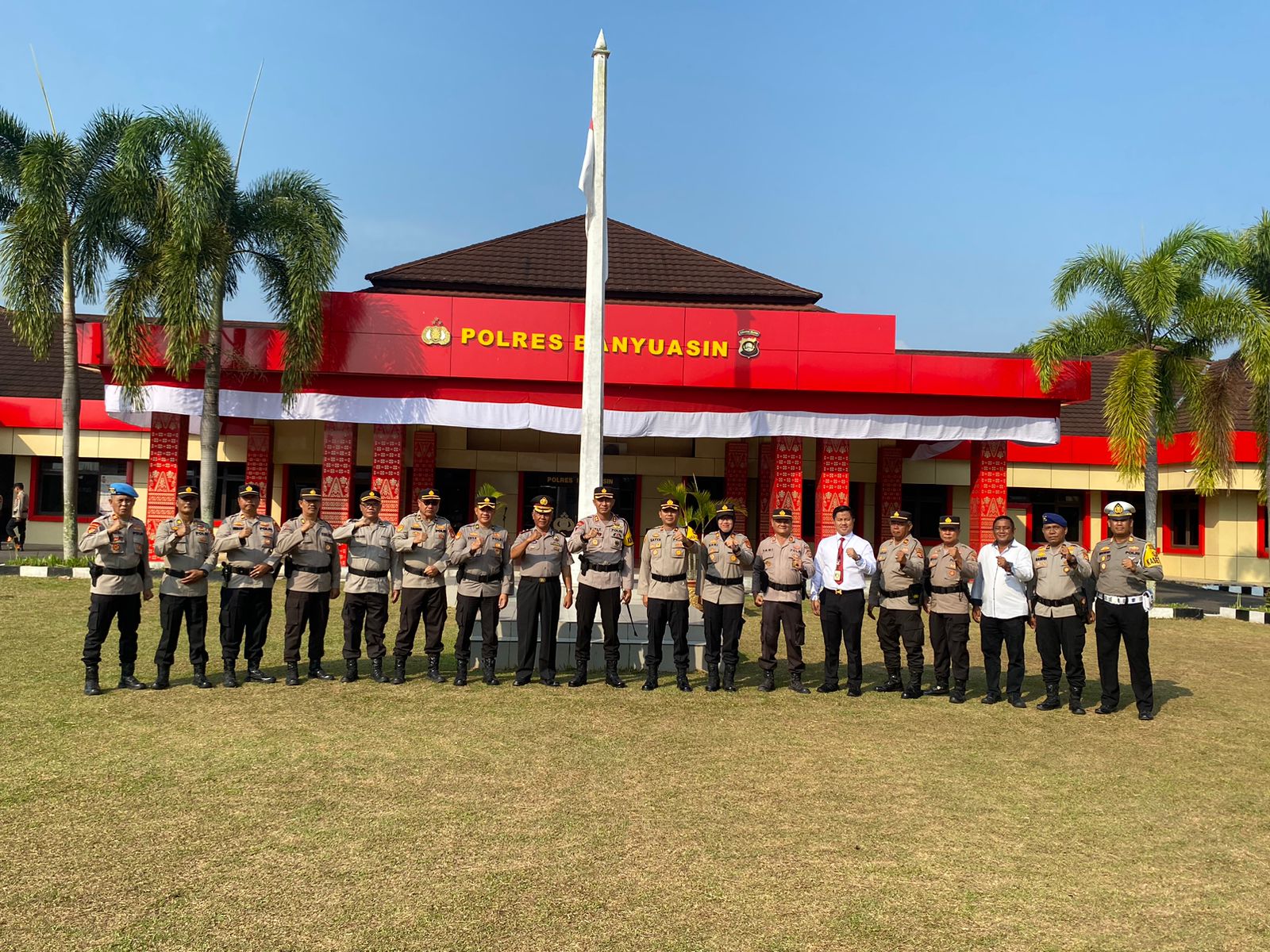 Upacara yang di hadiri oleh seluruh personil Polres Banyuasin termasuk Para Pejabat Utama (PJU) dan ASN serta personil yang mendapat kenaikan pangkat pengabdian Kompol Toip Suparja, S.H.