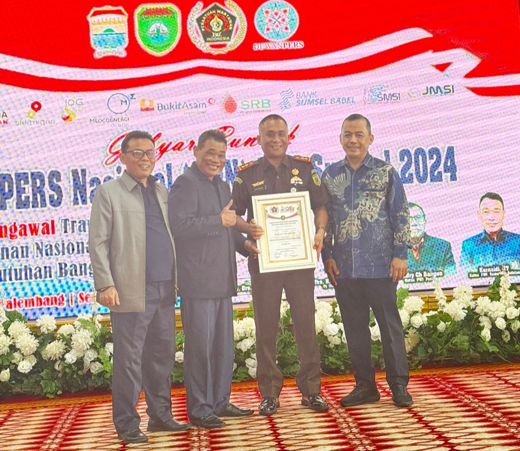 Kejari Banyuasin Raymund Hasdianto Sihotang SH, MH mendapatkan penghargaan Award dari Persatuan Wartawan Indonesia (PWI) Sumatera Selatan atas jasa sebagai sahabat PWI.