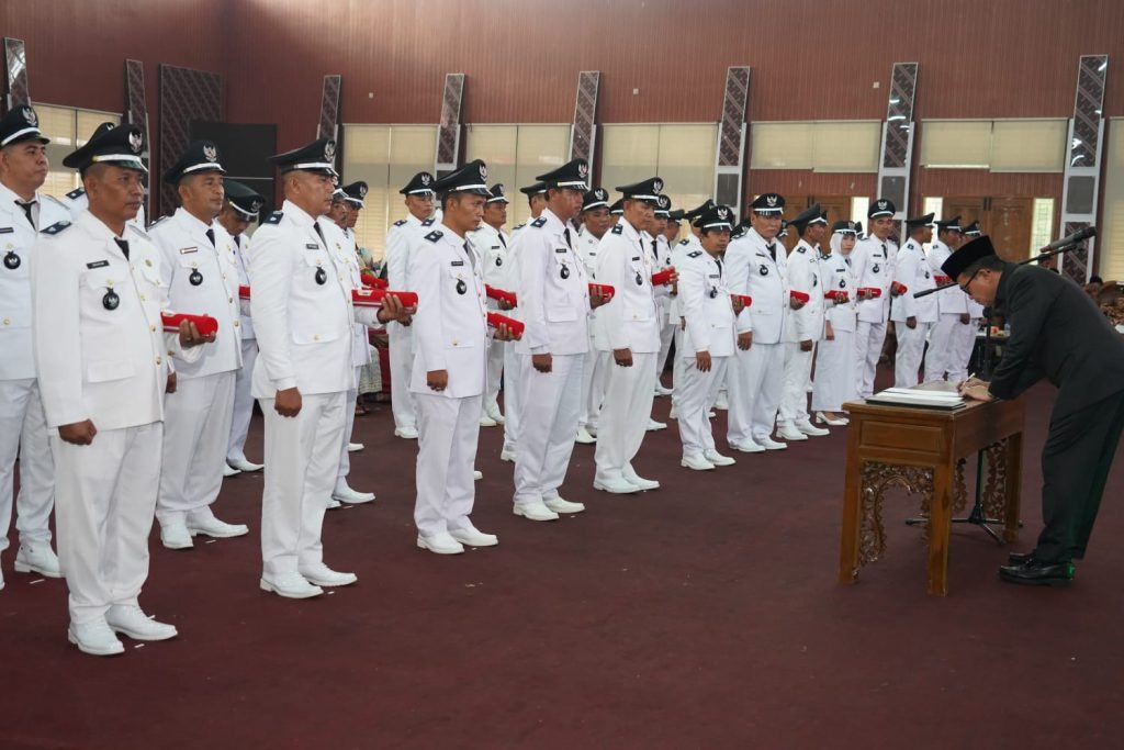 Momentum pelantikan dan pengambilan sumpah/ janji kepala desa ini merupakan puncak hasil proses demokrasi sebagai implementasi penyelenggaraan pemerintahan desa dalam kerangka otonomi desa, di gedung graha Sedulang setudung Pemkab Banyuasin, Jumat (22/12).