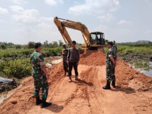 Banyuasin – Dansatgas TNI Manunggal Membangun Desa (TMMD) ke-121, Letkol Inf Roni Sugiarto didampingi Pasiterdim 0430/Banyuasin Kapten Panca Agung, meninjau langsung lokasi TMMD di Desa Tanjung Menang – Desa Terlangu Kecamatan Banyuasin III, Kabupaten Banyuasin.