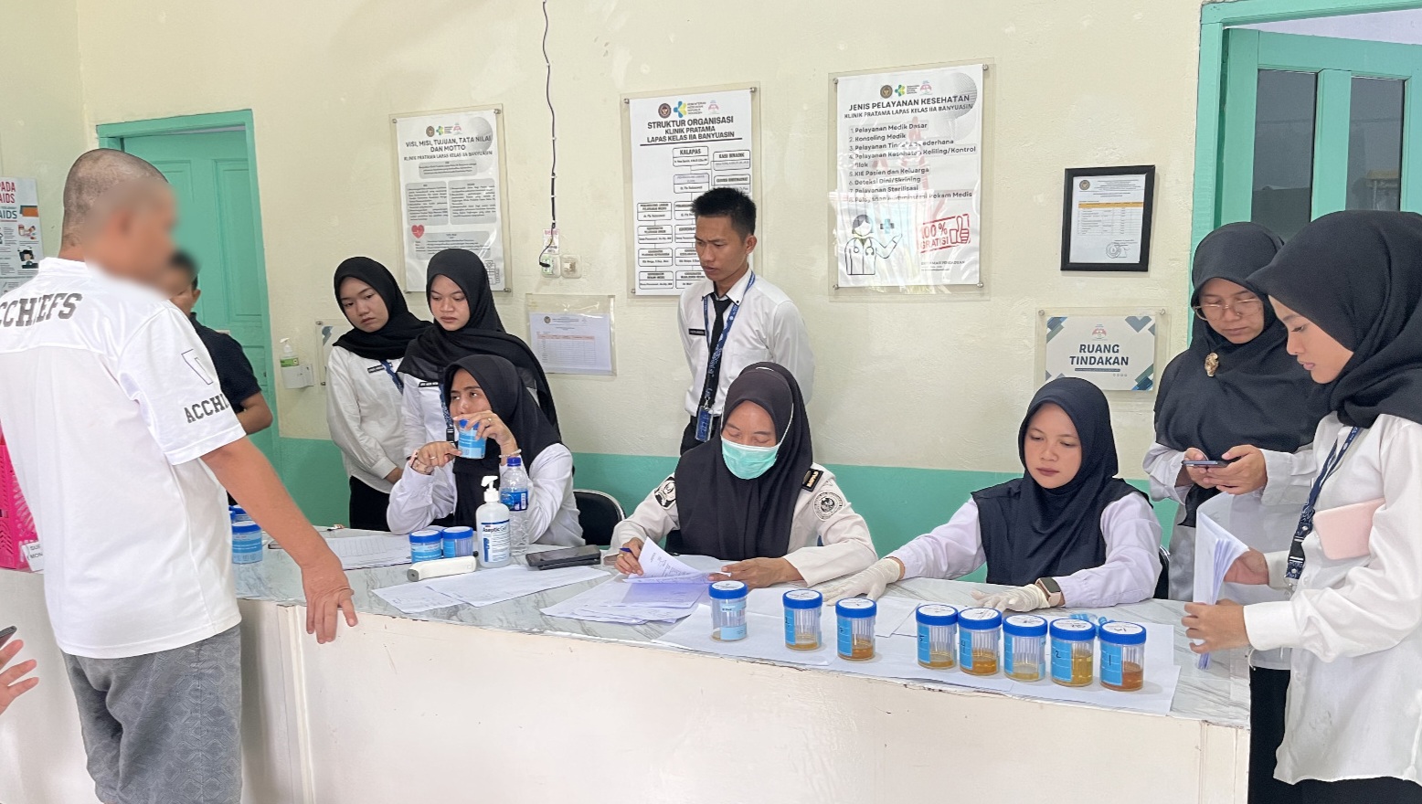 Pelaksanaan tes urine dilakukan oleh tim kesehatan Klinik Pratama Lapas Kelas IIA Banyuasin. Sebanyak 24 orang mengikuti pemeriksaan, yang terdiri dari 20 narapidana operan baru dari Rutan Kelas I Palembang, tiga narapidana dari Lapas Kelas IIB Kayuagung, serta satu orang tahanan operan baru dari Polsek Makarti.