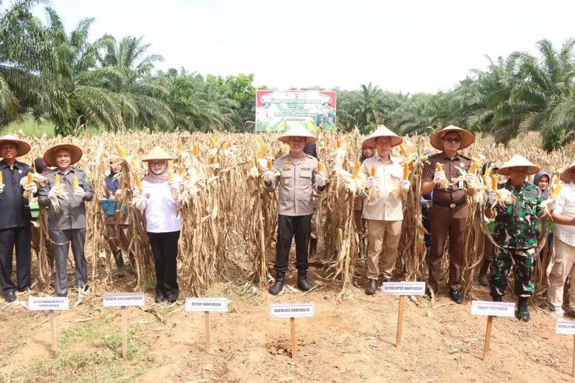 Sembawa, – Mendukung program ketahanan dan swasembada pangan nasional, Polres Banyuasin melaksanakan kegiatan Panen Raya Jagung pada, Rabu (14/05) lalu. Kegiatan ini dipimpin langsung Wakil Bupati Banyuasin Netta Indian, SP didampingi Kapolres Banyuasin, AKBP Ruri Prastowo, S.I.K., M.I.K., dihadiri jajaran pejabat utama Polres serta perwakilan dari instansi terkait.