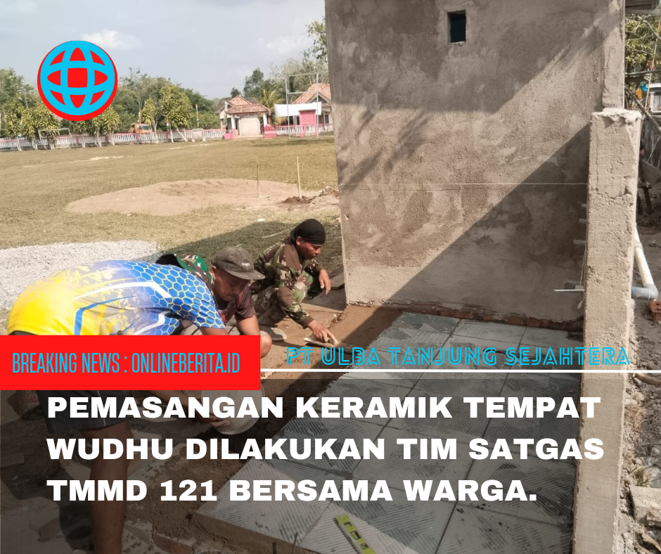 Anggota Satgas TMMD bersama warga sudah mulai memasang keramik lantai tempat Wudhu dan MCK yang terletak di SDN 8 Banyuasin III yang tidak lama lagi akan finishing.