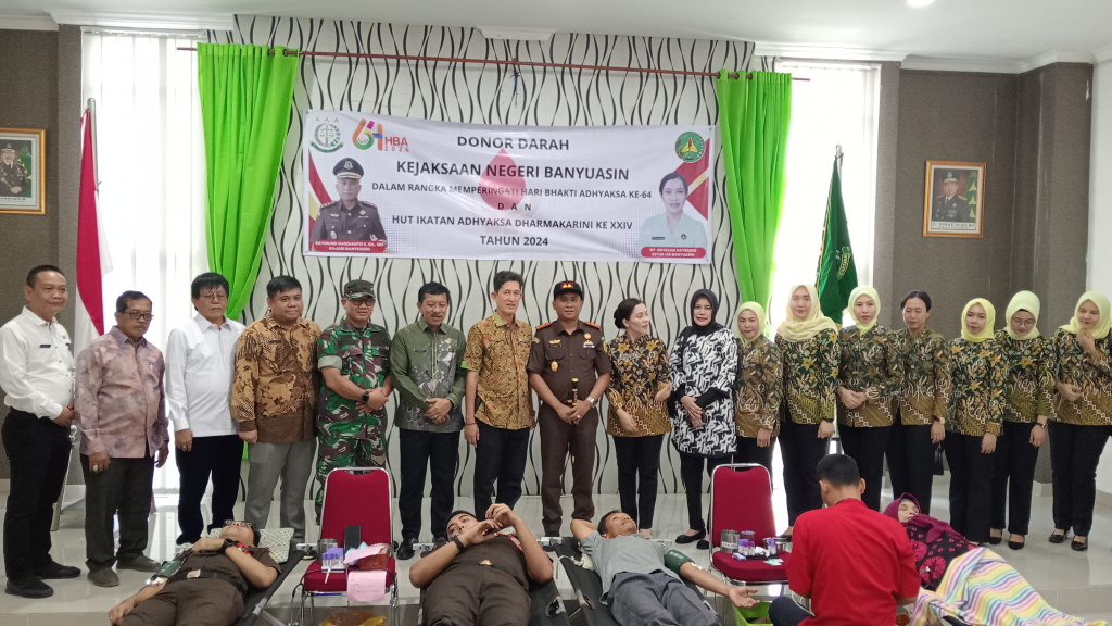 Banyuasin – Memperingati Hari Bhakti Adhyaksa Ke- 64 tahun dan HUT Ikatan Adhyaksa Dharmakartini Ke- XXIV. Kejaksaan Negeri Kabupaten Banyuasin menggelar Pelayanan Kolaboratif bekerjasama dengan Pemkab Banyuasin, gerakan pasar murah, donor darah dan Anjangsana.