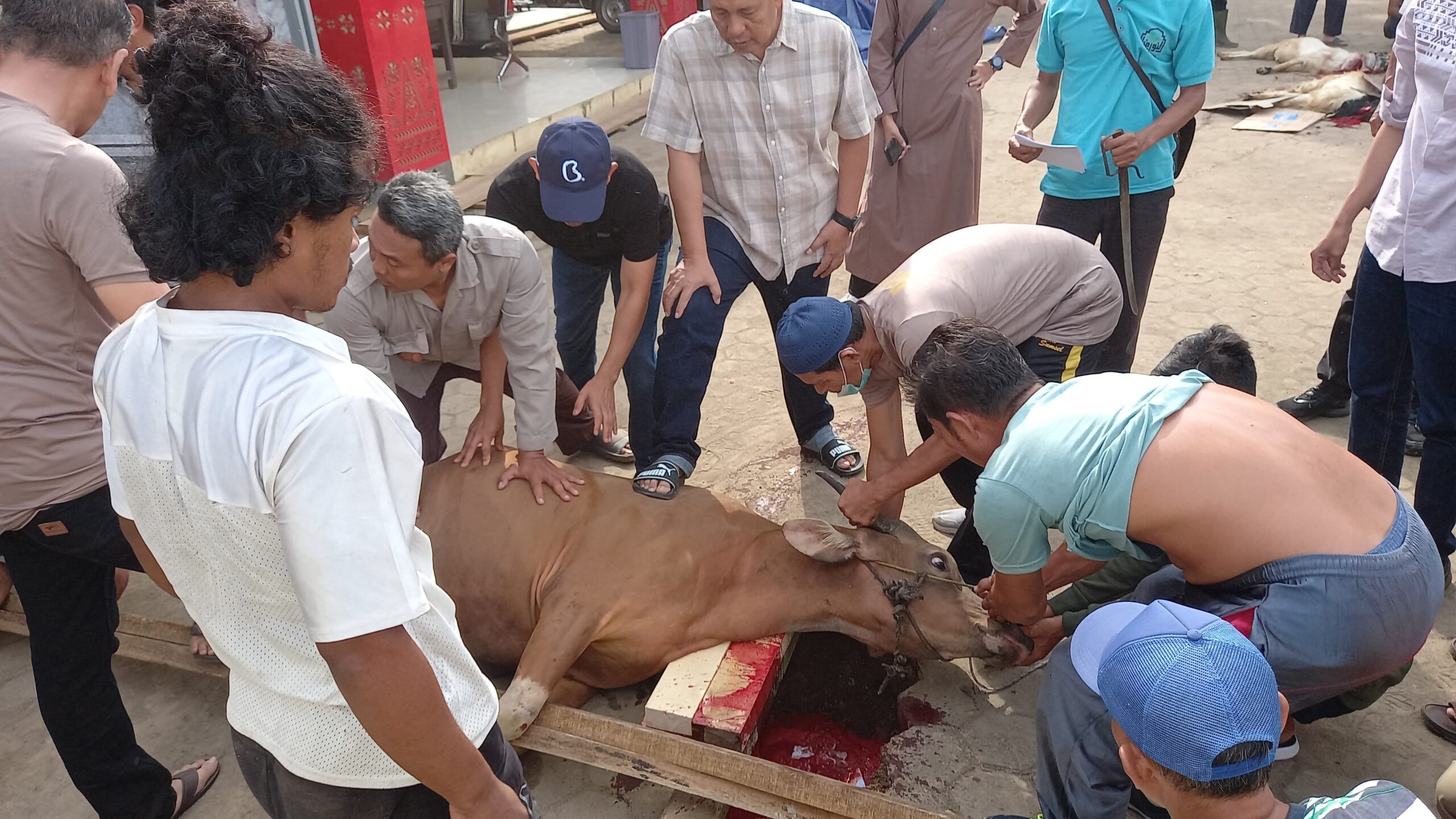 Kapolsek Talang Kelapa AKP Herli Setiawan, mengatakan, hewan kurban yang dipotong ini sebanyak 5 ekor, terdiri dari 2 ekor sapi dan 3 ekor kambing.