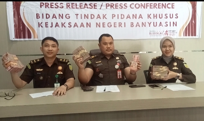 “Alhamdulillah sampai hari ini kami Kejaksaan Negeri Kabupaten Banyuasin menerima uang pengembalian dari kerugian negara yang dilakukan oleh pihak keluarga terdakwa sebesar Rp 300.433.192,45 sen,” jelas Giovani.