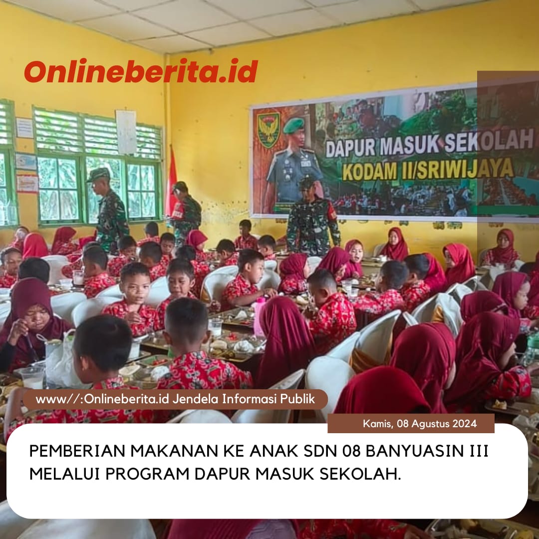 “Program Dapur Masuk Sekolah ini juga dengan sasaran sekolah-sekolah dasar untuk anak-anak didik, dengan memberikan makan bergizi di tambah asupan vitamin, buah-buahan dan susu, dan Diharapkan dengan kegiatan Dapur masuk sekolah dapat berkelanjutan dan berkesinambungan sehingga lebih meningkatkan sinergitas antara TNI dengan Pemerintah daerah Khususnya Dinas Pendidikan & Kebudayaan kabupaten Banyuasin,” Tutupnya.