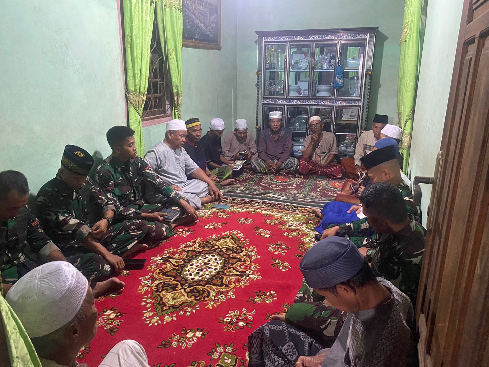 Yasinan dan doa bersama ini dilakukan anggota satgas selesai waktu sholat Magrib, guna meningkatkan keimanan, ketaqwaan, dan keakraban bersama masyarakat sekitar lokasi TMMD, sebagai bentuk kedekatan TNI kepada rakyat sehingga terbangun ikatan emosional yang erat.