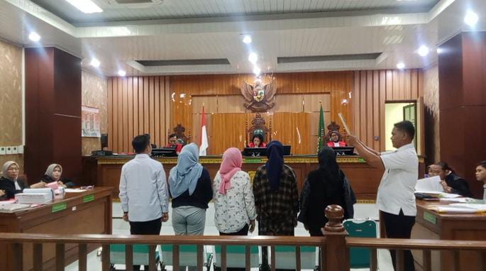 Sidang agenda mendengarkan keterangan saksi-saksi yang hadir di antaranya : Kuasa Hukum Titis Rachmawati, Darlina, Ibrahim, Jumhoiriyah, Salbiah.