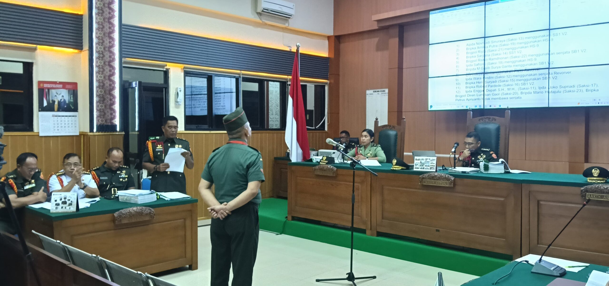 Palembang, – Sidang perdana atas terdakwa Kopral Dua (Kopda) Bazarsah, anggota TNI yang didakwa atas kasus penembakan yang menewaskan tiga anggota polisi, digelar di Pengadilan Militer I-04 Palembang, Rabu (11/6).
