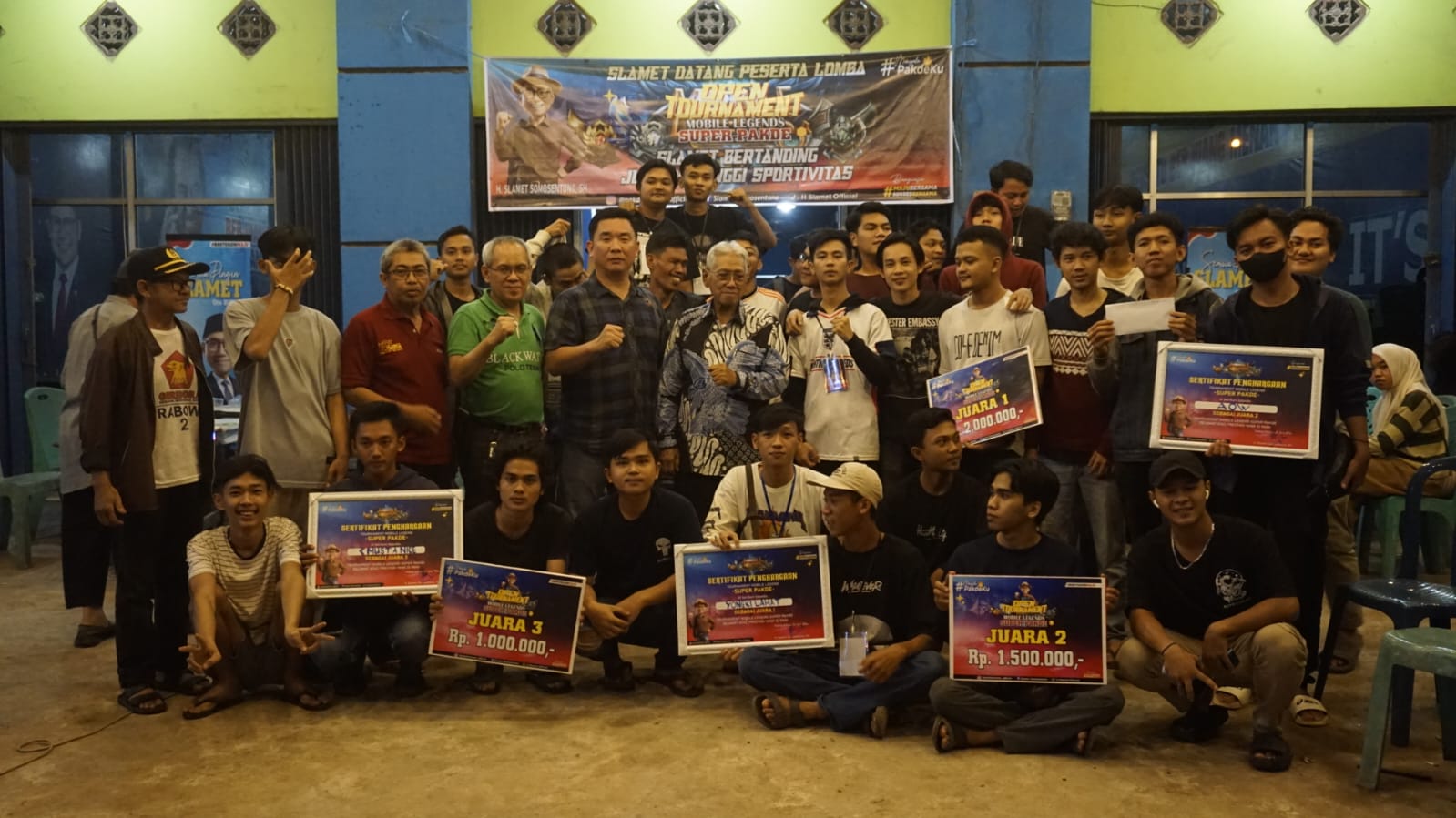 Banyuasin – Turnamen Mobile Legend Super Pak De berlangsung meriah dan dipenuhi antusias ratusan peserta. Malam penutupan grand final turnamen Mobile Legend bersamaan hari lahir Pancasila itu dihadiri langsung Bakal Calon Bupati Banyuasin Slamet Somosentono, di Posko Pemenangan Semua Pingin Slamet, Sabtu (01/06) malam.