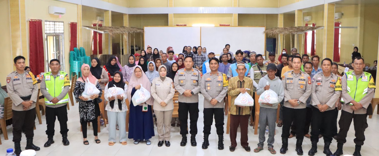 Hadir dalam kegiatan tersebut Kasat Binmas AKP Yudhi Cahyono SH, KBO Sat Binmas Iptu Abu Bakar SH, Kasi Dokkes Polres Banyuasin Penata I Widyawati SKM MM, Kasikum Polres Banyuasin Ipda M Ropiyan Anggono SH MH yang juga sebagai ketua seksi Bakti Sosial pembagian sembako gratis.