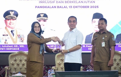 Pangkalan Balai, Onlineberita.id – Pemerintah Kabupaten Banyuasin terus mendorong peningkatan tata kelola keuangan desa yang transparan dan akuntabel. Upaya ini diwujudkan melalui Workshop Evaluasi Pengelolaan Keuangan dan Pembangunan Desa, yang secara resmi dibuka oleh Wakil Bupati Banyuasin, Netta Indian, S.P., di Graha Sedulang Setudung, Senin (13/10/2025).